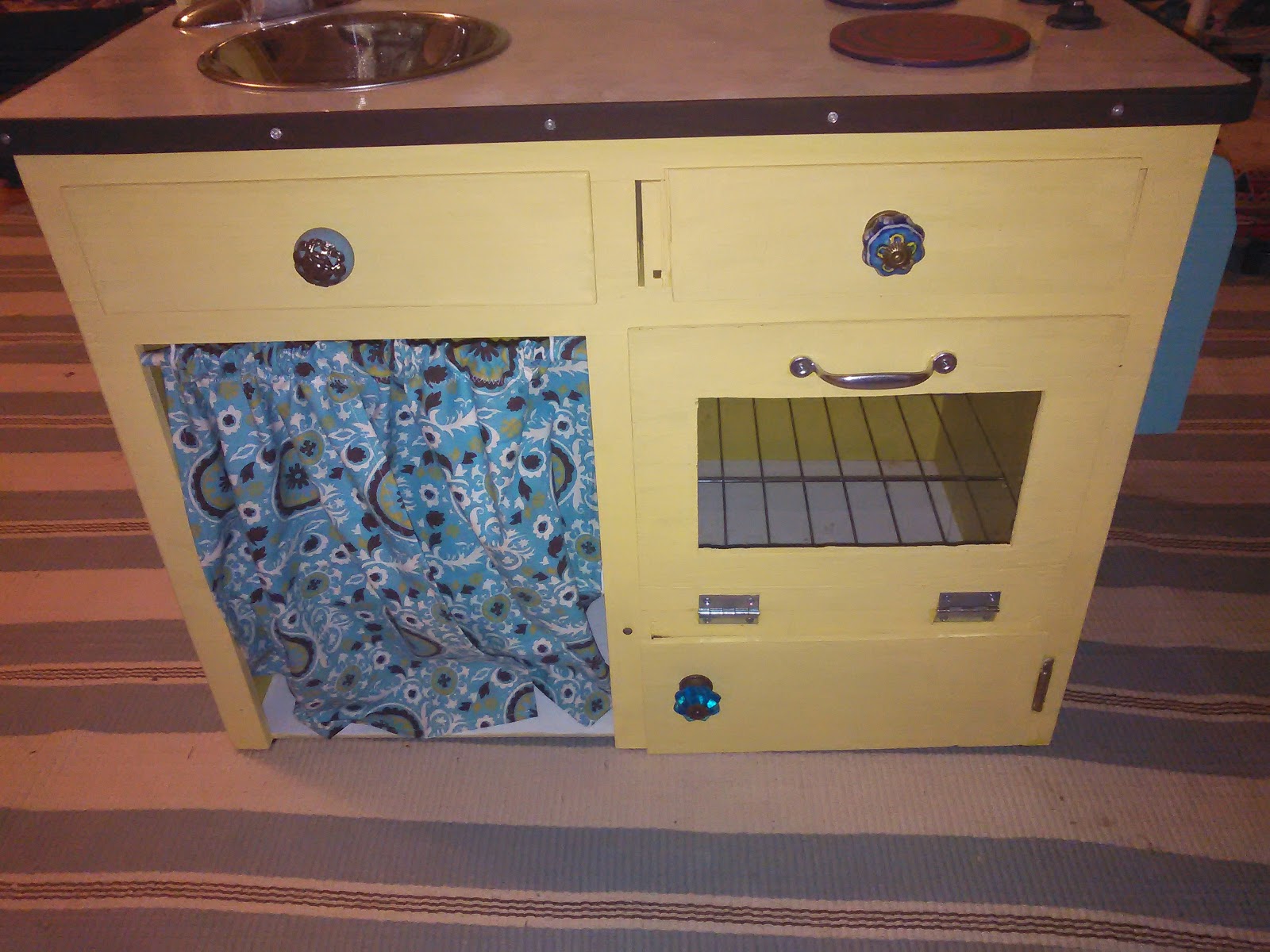 June was not happy that the sink doesn't really turn on, but it hasn't stopped her from pretending that is where she washes the dishes.